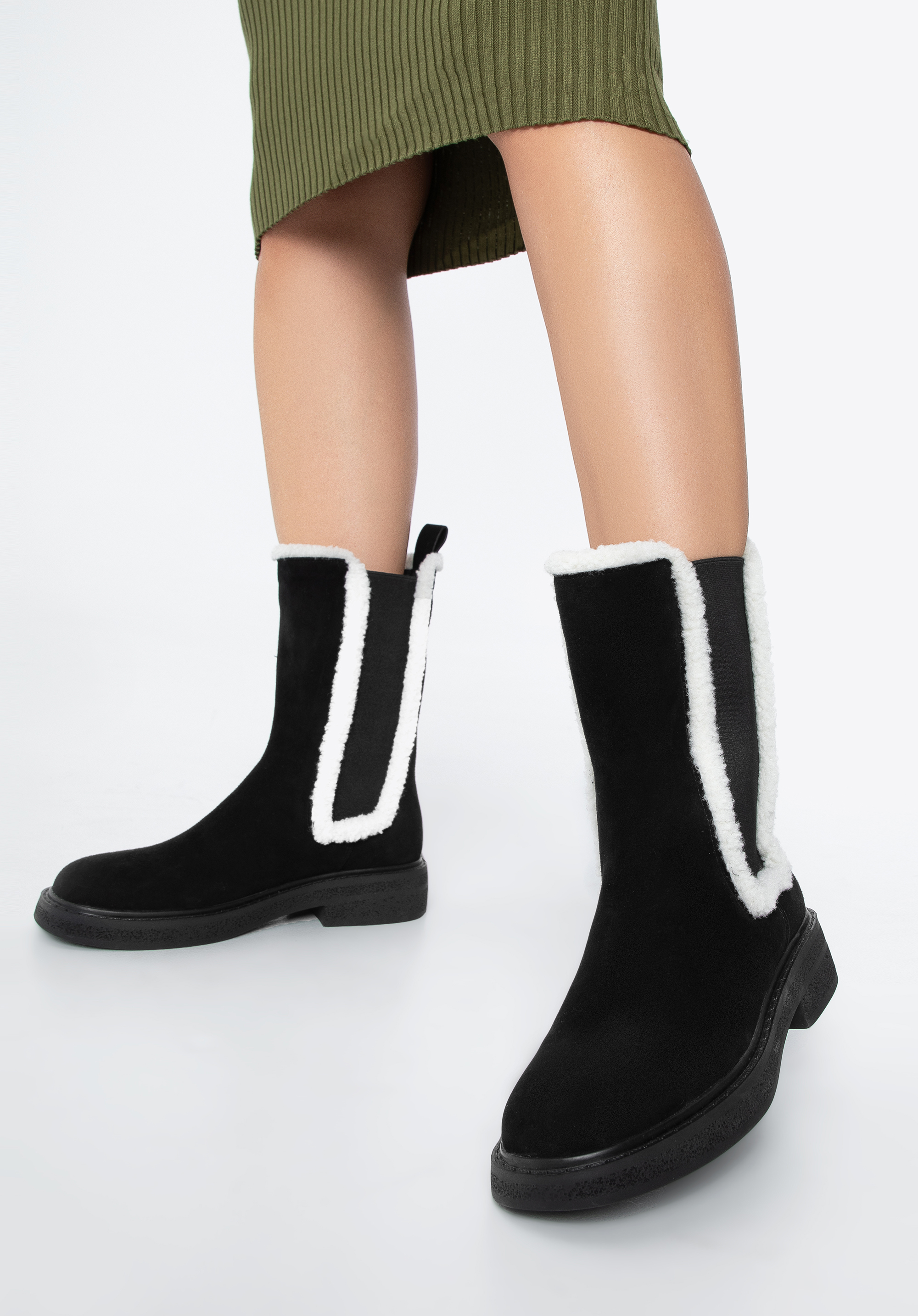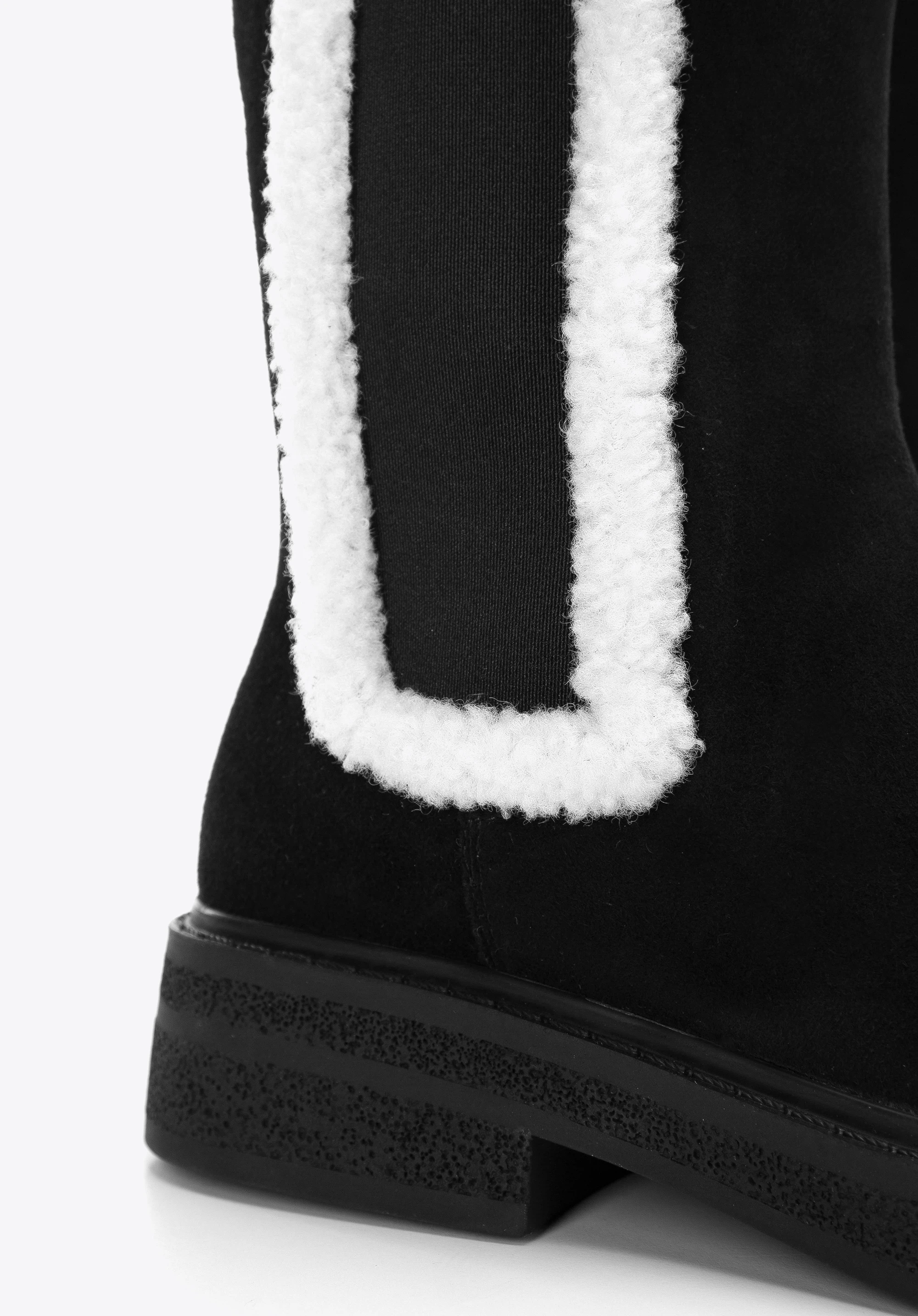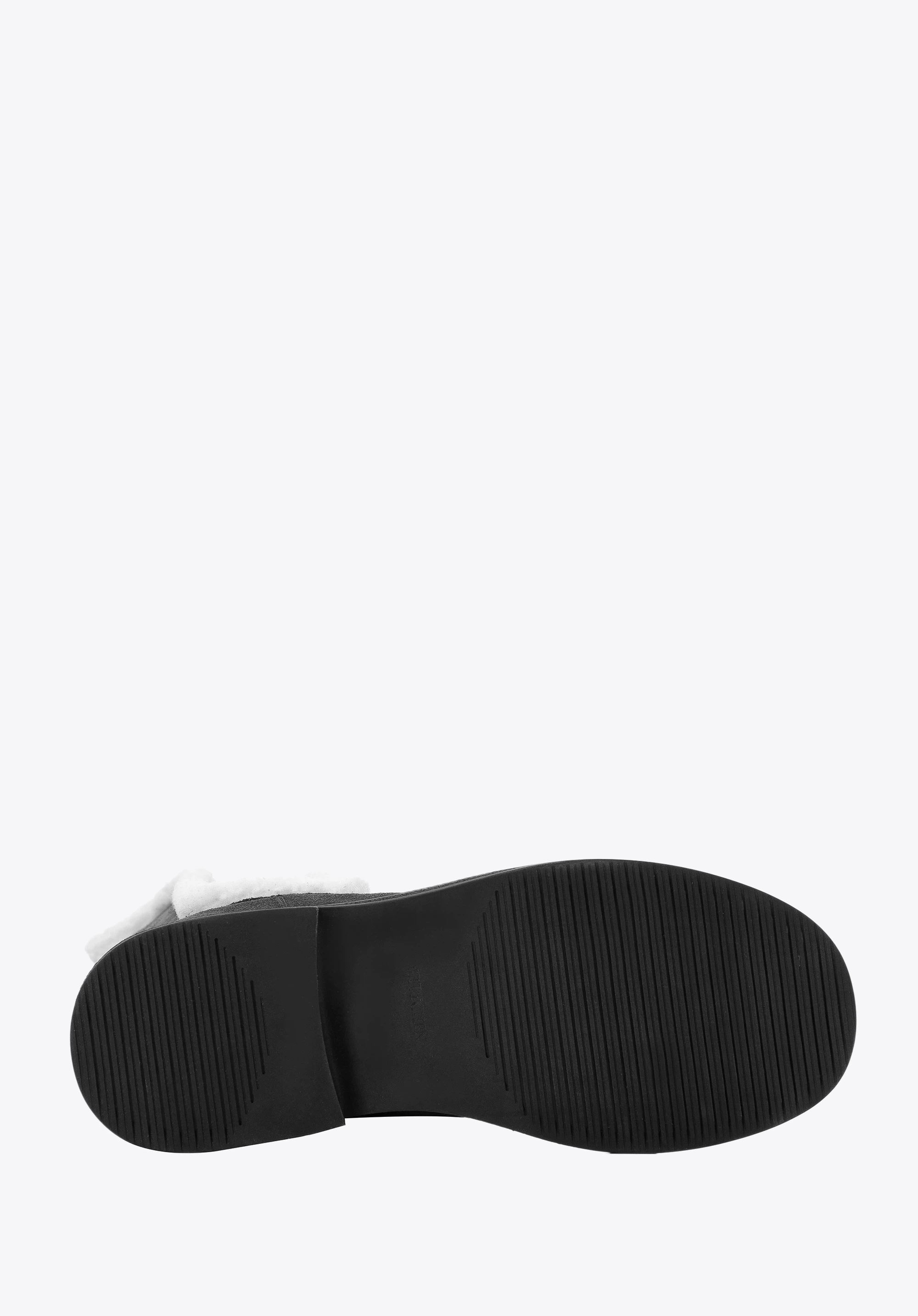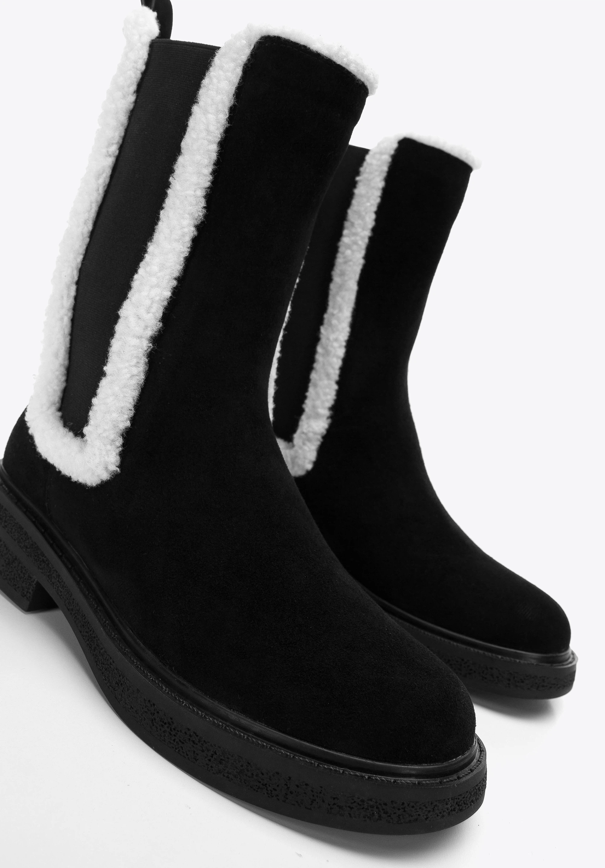 Diese originellen Stiefeletten sind ein modisches Accessoire für den Herbst und frühen Winter. Sie sind aus hochwertigem Wildleder gefertigt. Der Schaft ist mit dem angenehmen Schafsfellimitat ausgestattet. Die dicke Sohle mit Rillen verleiht Ihnen ein paar Zentimeter mehr Höhe und sorgt für guten Halt auf dem Boden bei fast allen Bedingungen. Dank des weichen Futters und der Innensohle sind sie jeden Tag angenehm zu tragen. Tragen Sie sie zu Ihrem Lieblings-Minikleid oder zu einer Hose mit kurzem Bein, um den dekorativen Saum zu betonen. Die Stiefeletten für Damen mit künstlichem Schafsfell bringen einen neuen Stil in Ihre Garderobe.