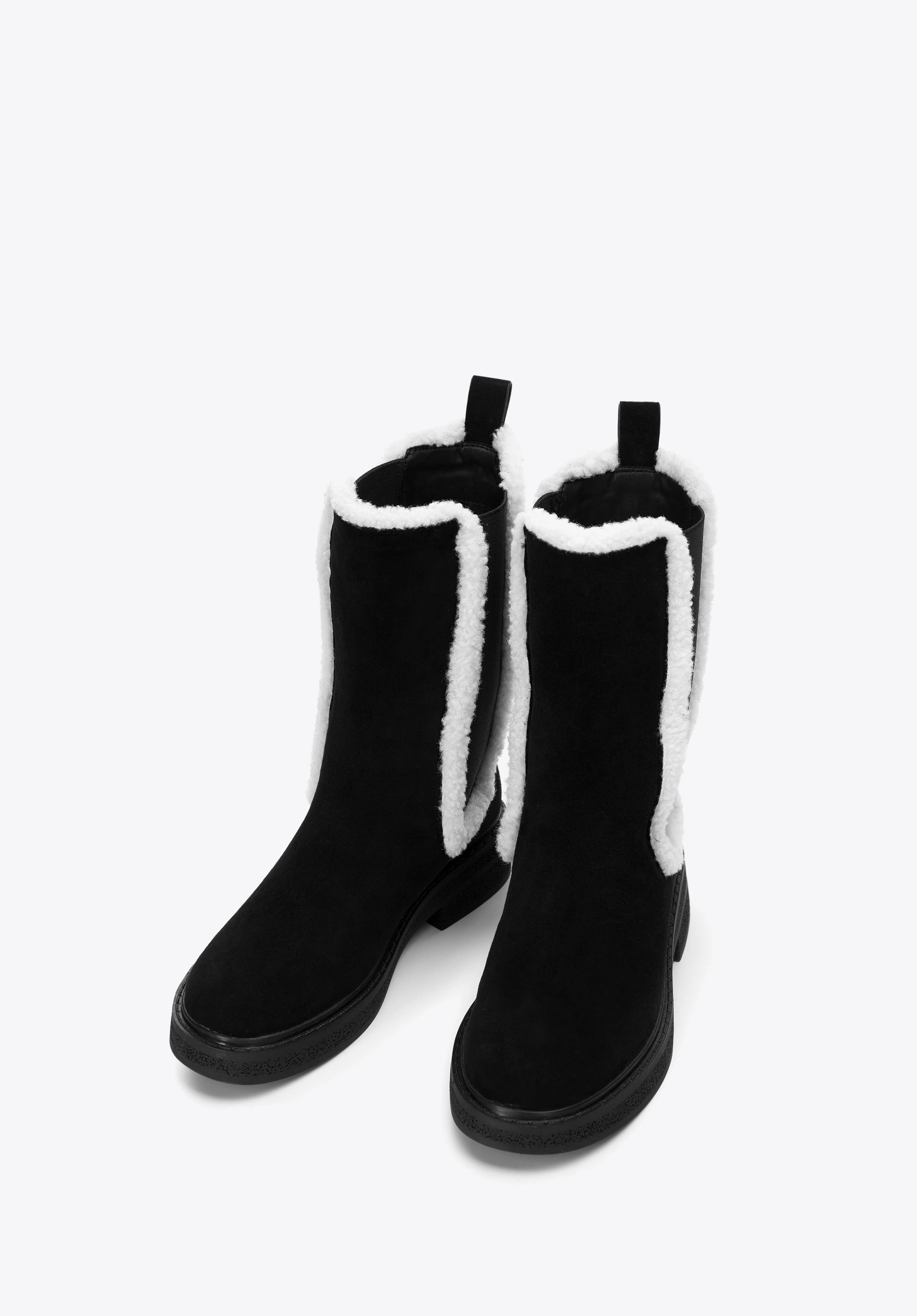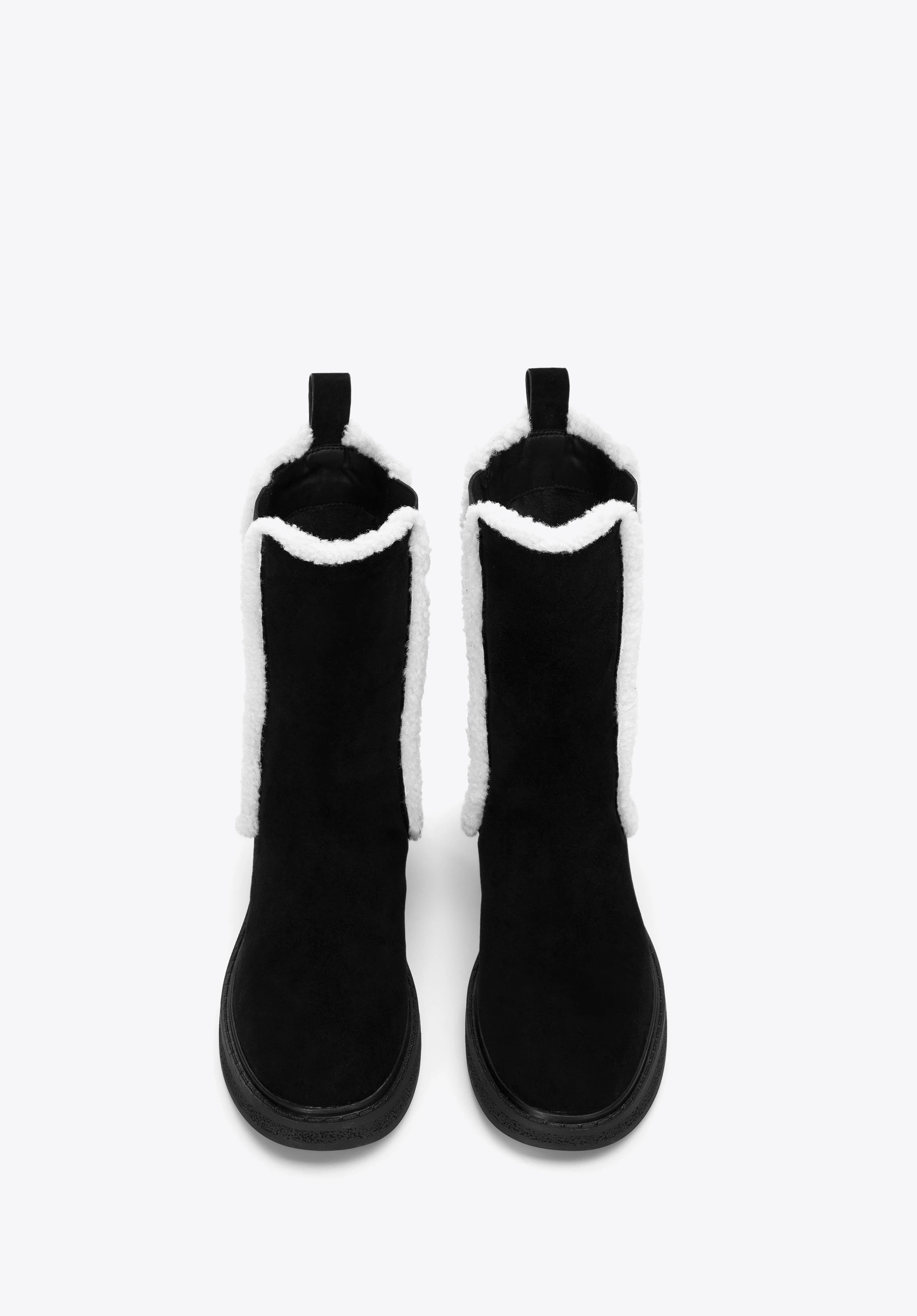 schwarze Stiefeletten für Damen mit künstlichen Schafsfell