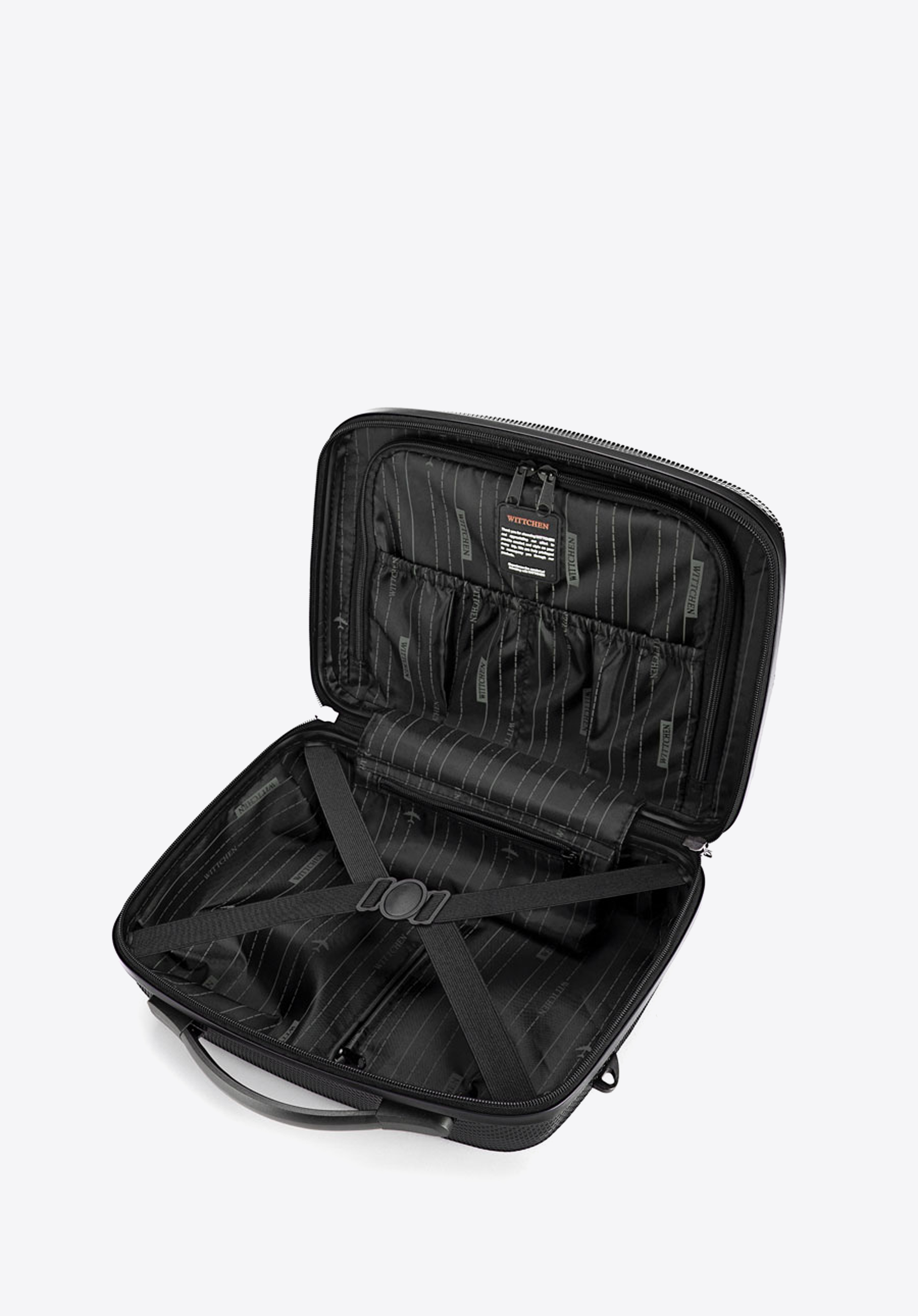 Dieser elegante Kulturbeutel aus der PC-Ultra-Light-Kollektion ist aus verbeulungssicherem Polycarbonat gefertigt. Außerdem ist sie mit einer speziellen Beschichtung versehen, um die Kratzfestigkeit zu erhöhen. Sie bildet ein perfektes Duo mit vielen Koffern. Das funktionelle Modell ist mit einem Griff zum einfachen Tragen der Kosmetiktasche, einem abnehmbaren, verstellbaren Riemen und einem elastischen Band zur Befestigung am Koffergriff ausgestattet.