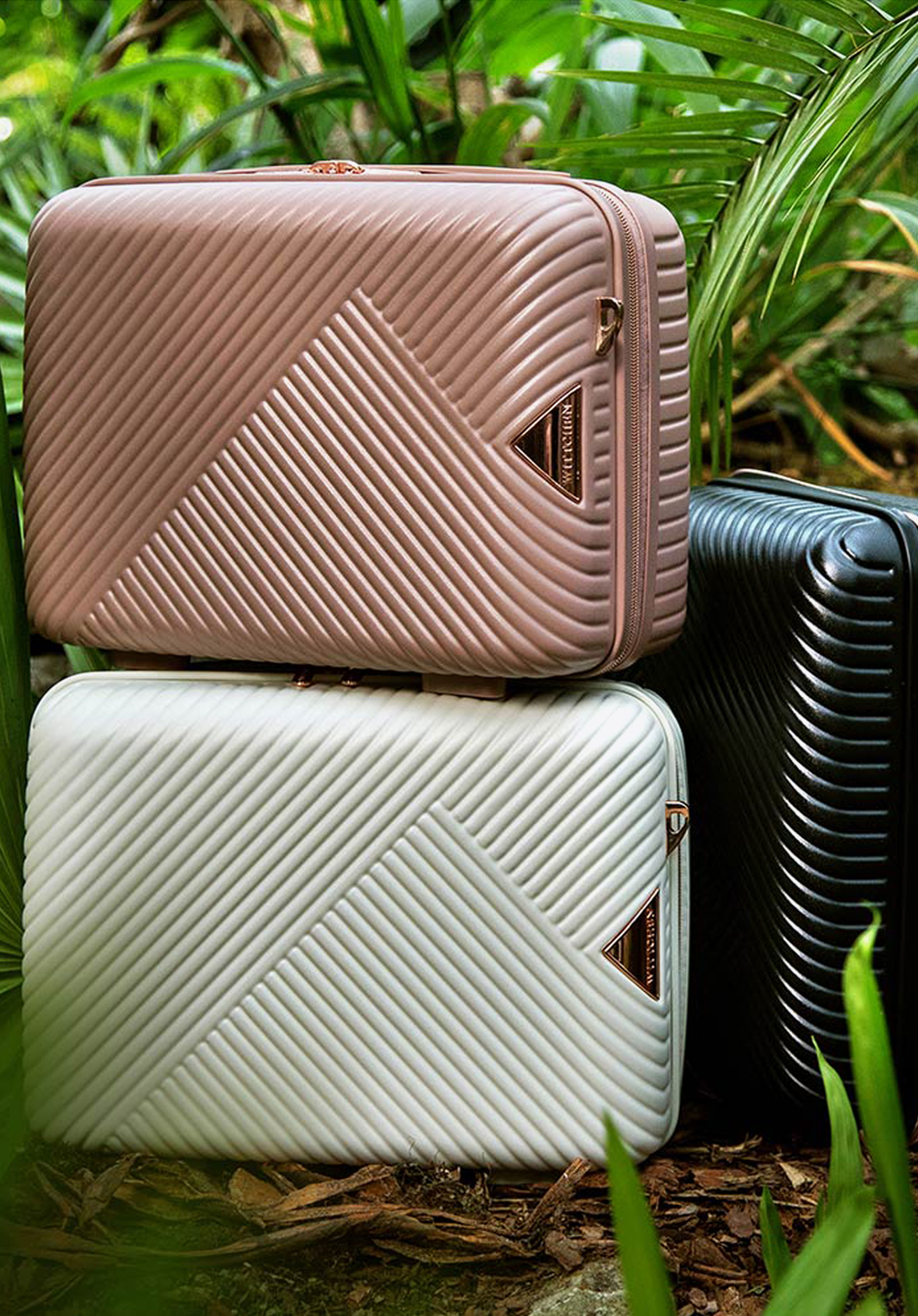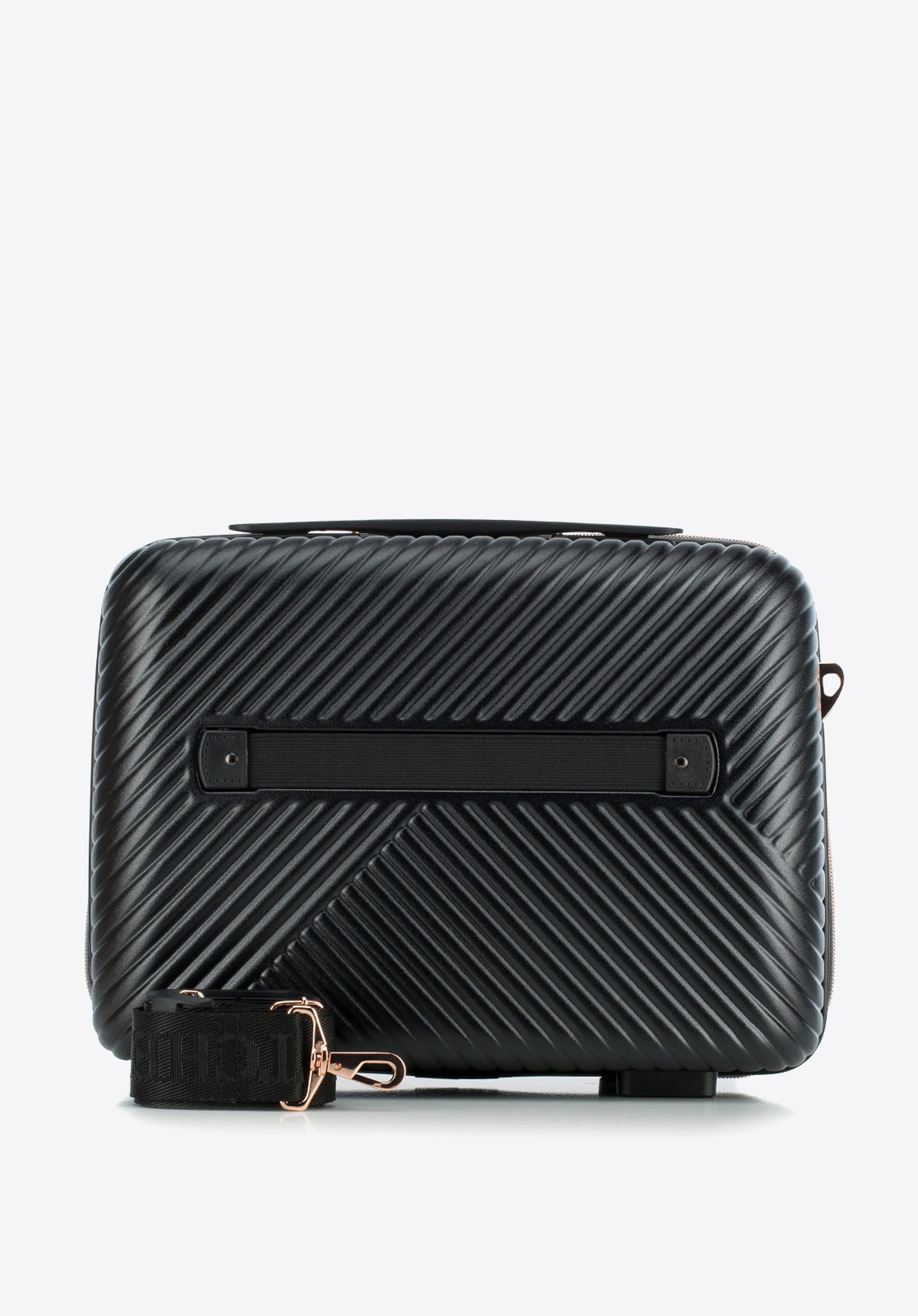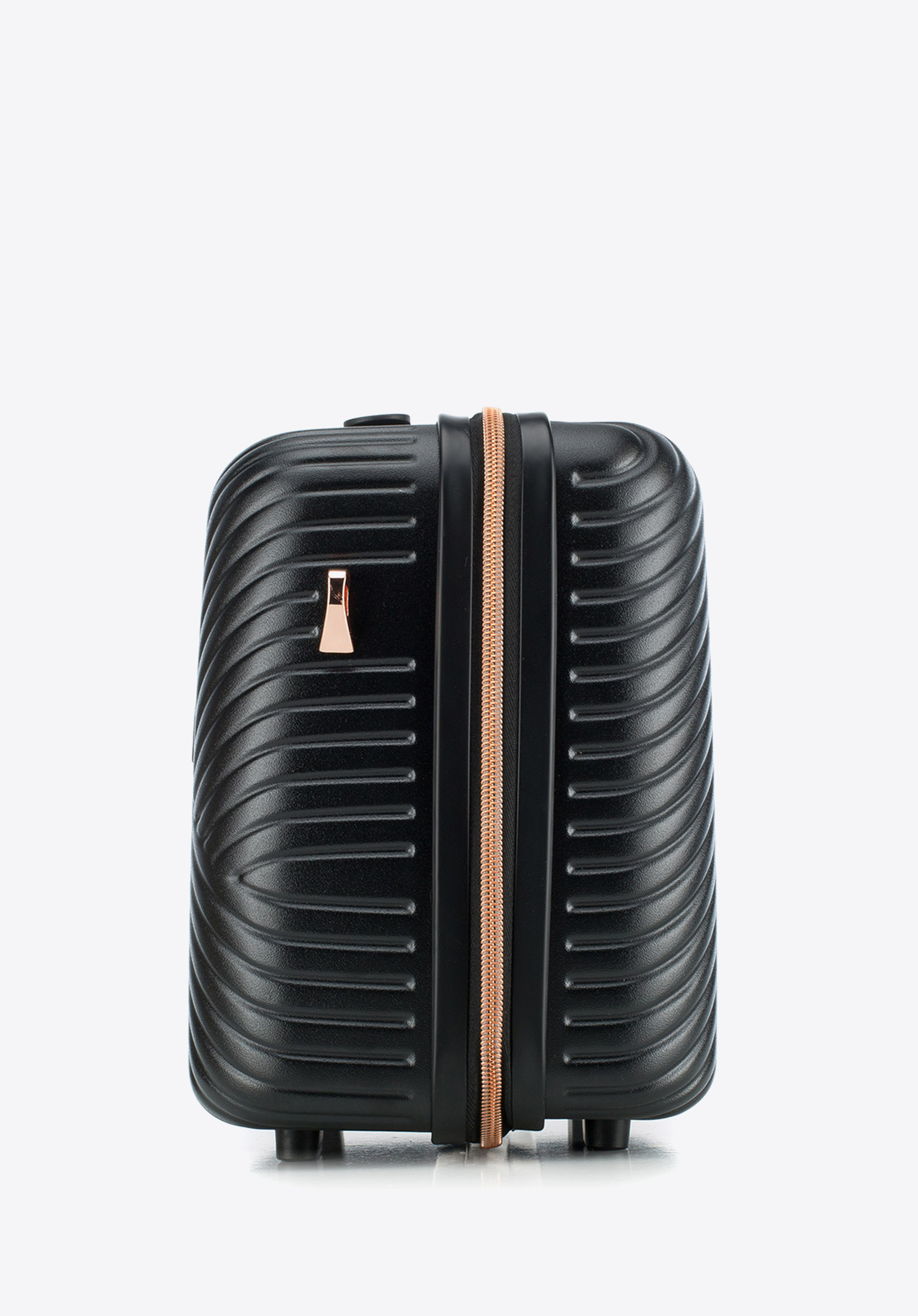 Der leichte Kosmetikkoffer wird aus Polycarbonat mit matter Oberfläche hergestellt. Das elegante Beauty Case wir mit glänzenden Elementen in Roségold geschmückt. Der Innenraum wird mit beigefarbenem Futter mit WITTCHEN-Logo bedeckt. Dieses Modell ist in drei Farbtönen erhältlich: Weiß, Schwarz und Rosa.
