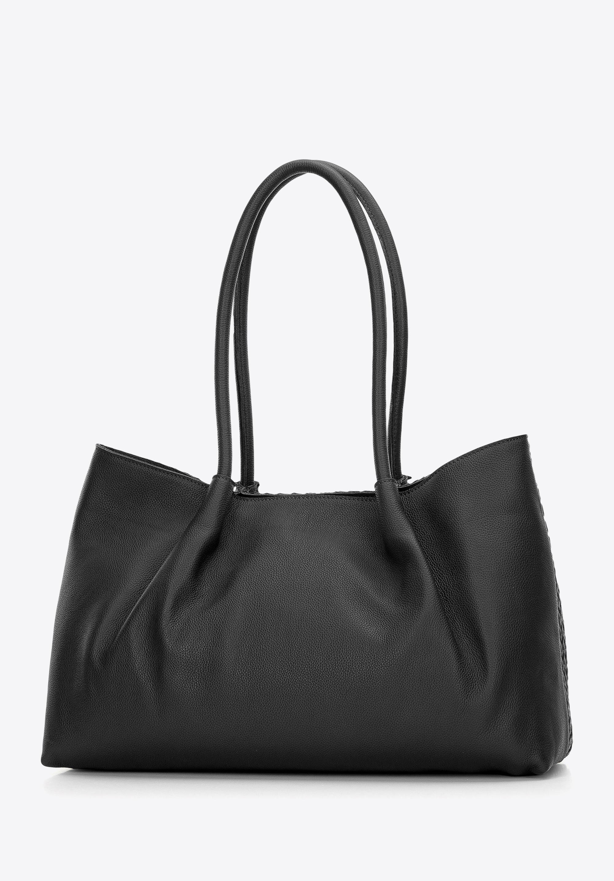 Unsere Shopper-Tasche für Damen ist Eleganz und Funktionalität in einem. Sie ist aus weichem, mattem Leder von höchster Qualität gefertigt und besticht durch ein dezentes Flechtmuster auf der Vorderseite, das ihr einen einzigartigen Charakter verleiht. Dank ihres geräumigen Innenraums bietet sie problemlos Platz für A4-Dokumente und ist damit die perfekte Wahl für den täglichen Gebrauch.