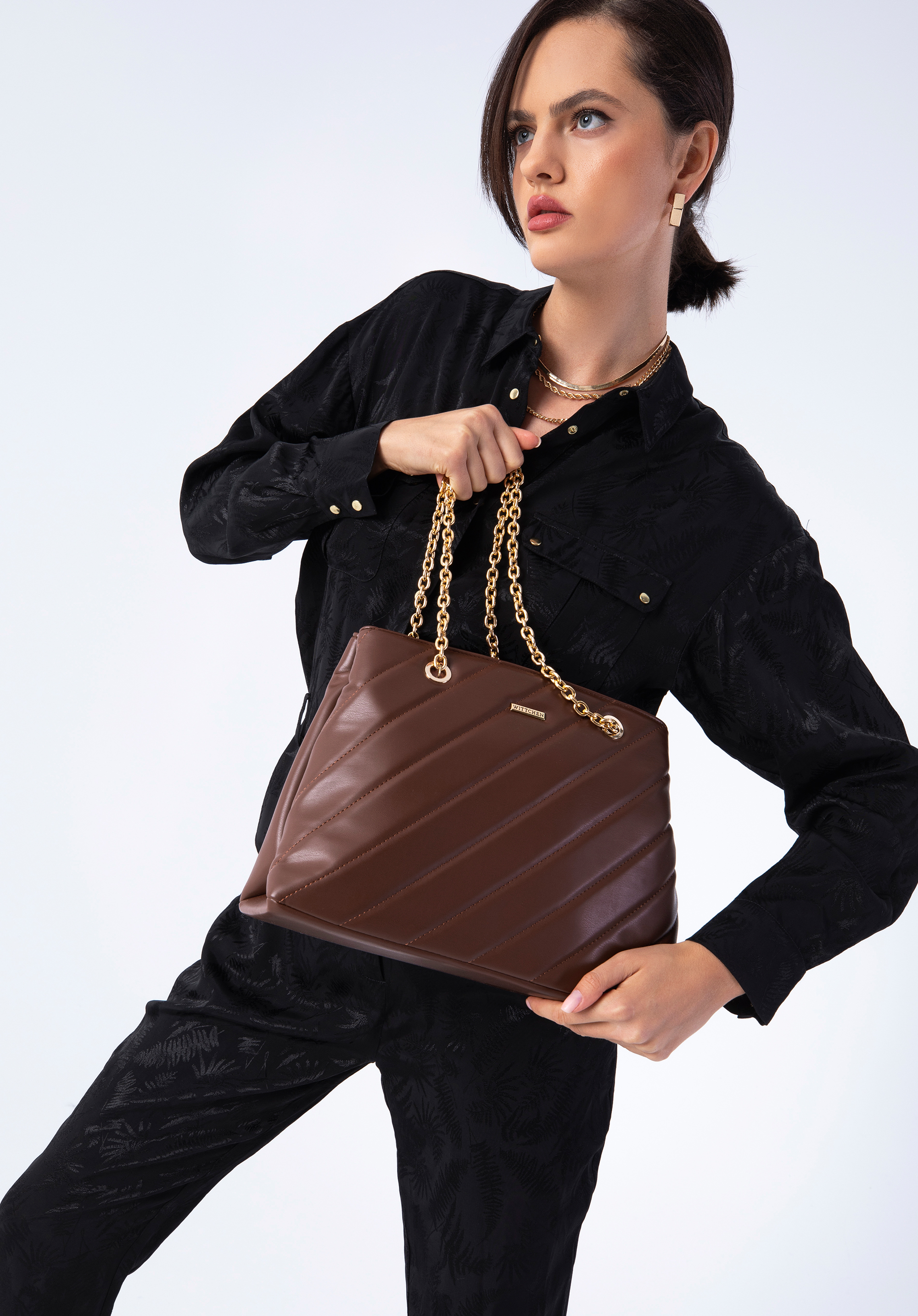 Shopper-Tasche mit diagonaler Kettensteppung Farbe: braun