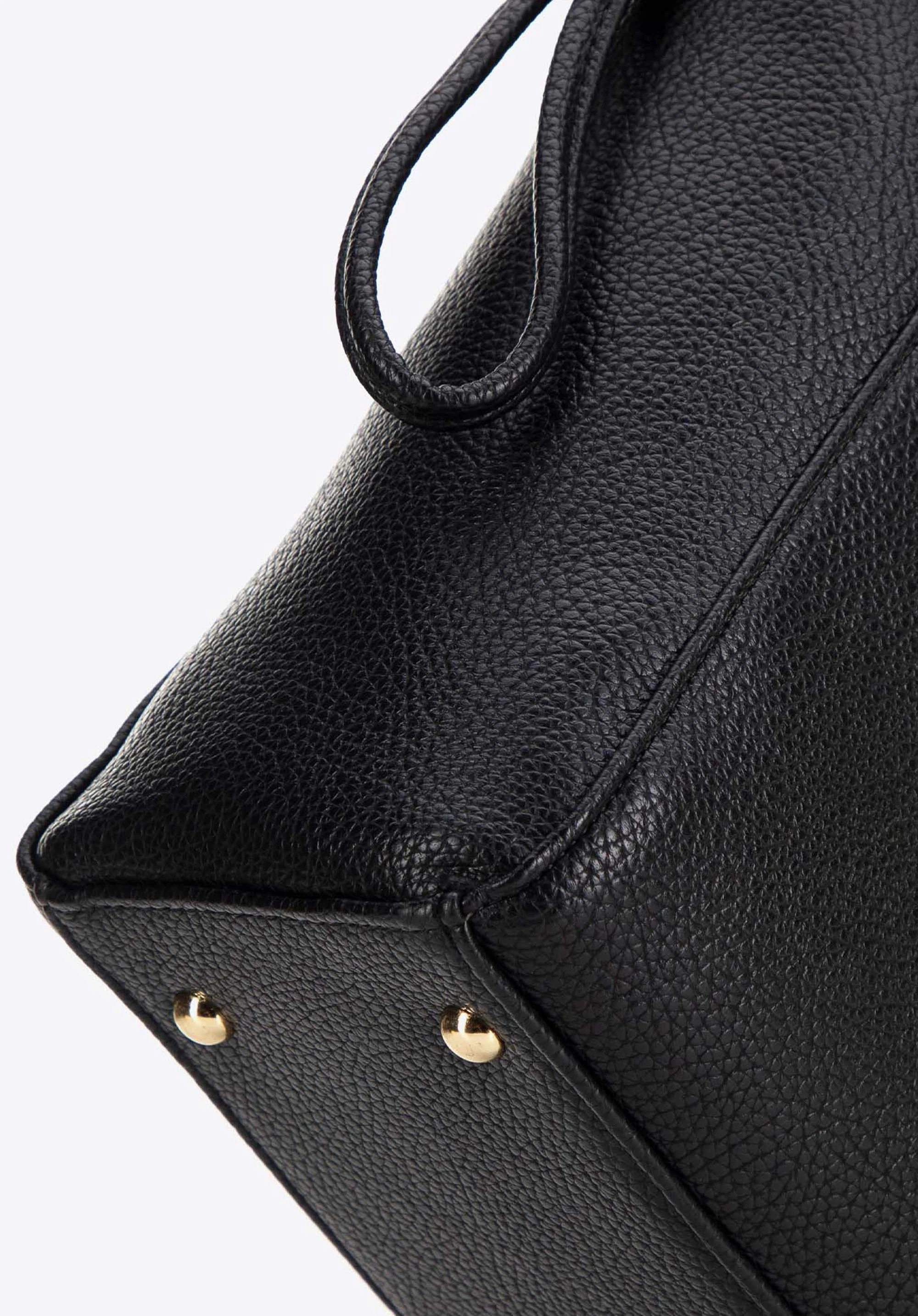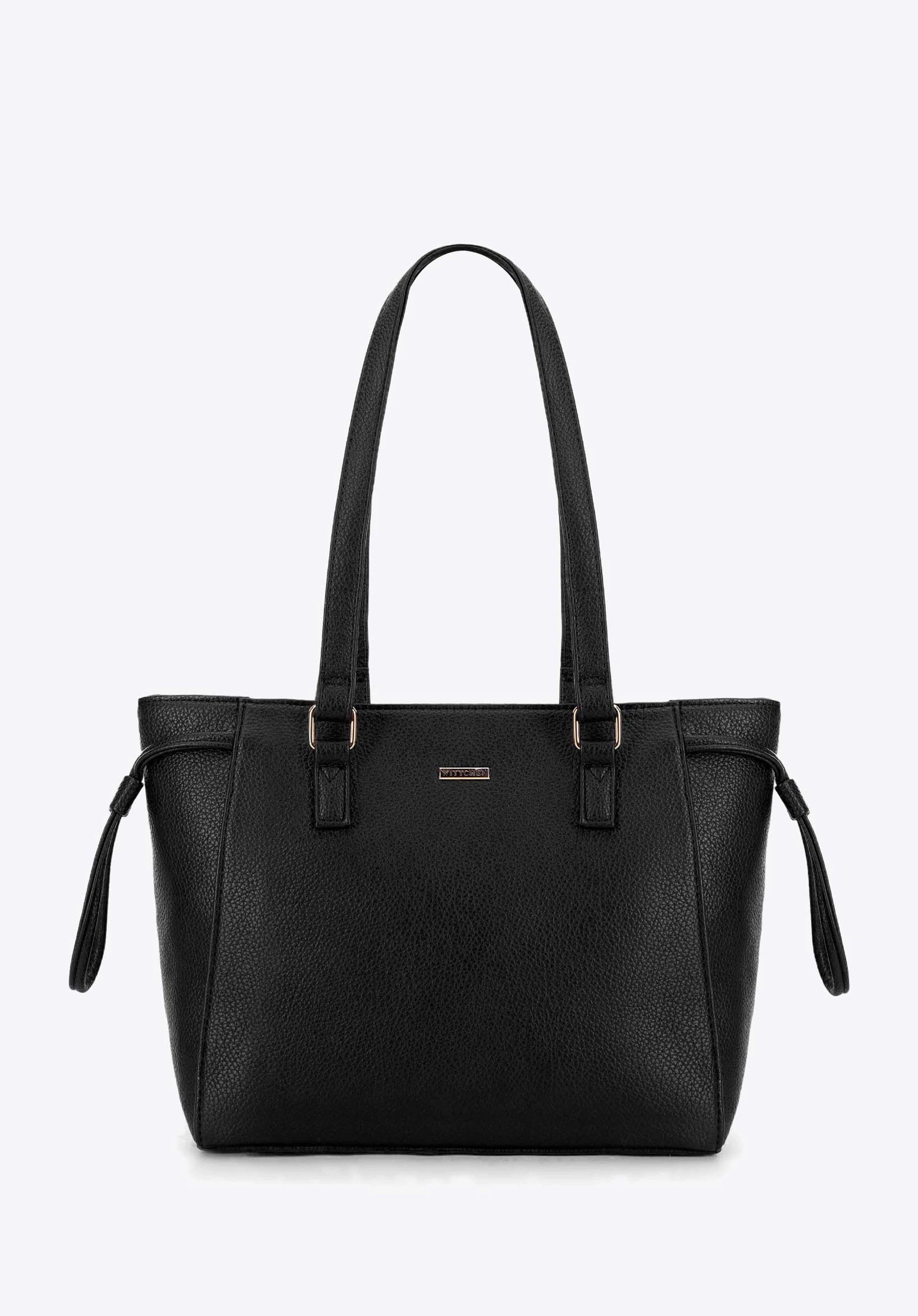 Die Shopper-Tasche aus Kunstleder ist eine ausgezeichnete Wahl für Frauen, die bei ihren Alltagsoutfits Wert auf Funktionalität und Eleganz legen. Zwei bequeme Griffe ermöglichen ein bequemes Tragen auf der Schulter oder in der Hand, während dekorative Kordeln an den Seiten das einzigartige Design hervorheben. Das Innere der Handtasche mit zwei geräumigen Fächern, die durch eine Reißverschlusstasche unterteilt sind, erleichtert das Verstauen aller wichtigen Gegenstände.