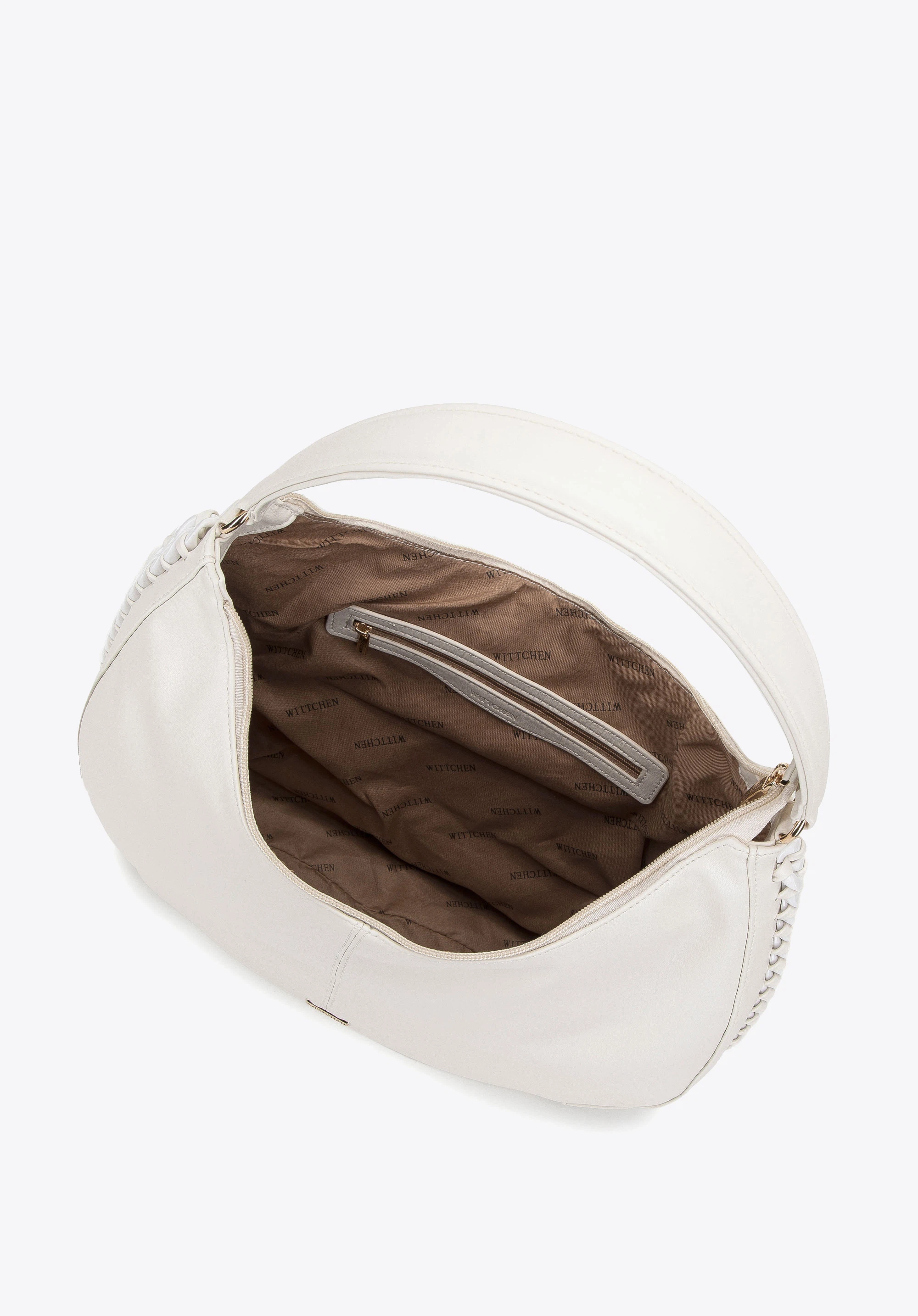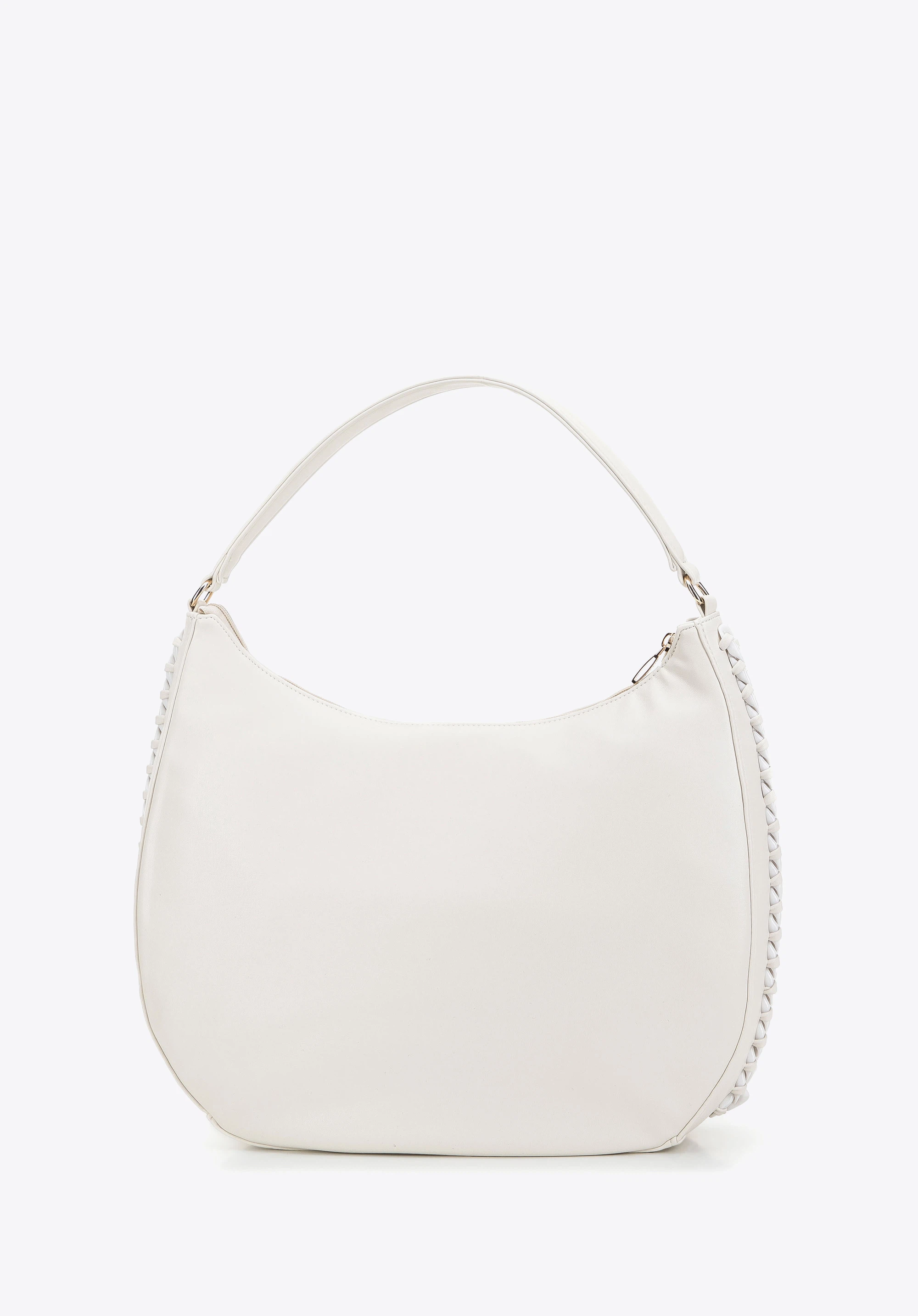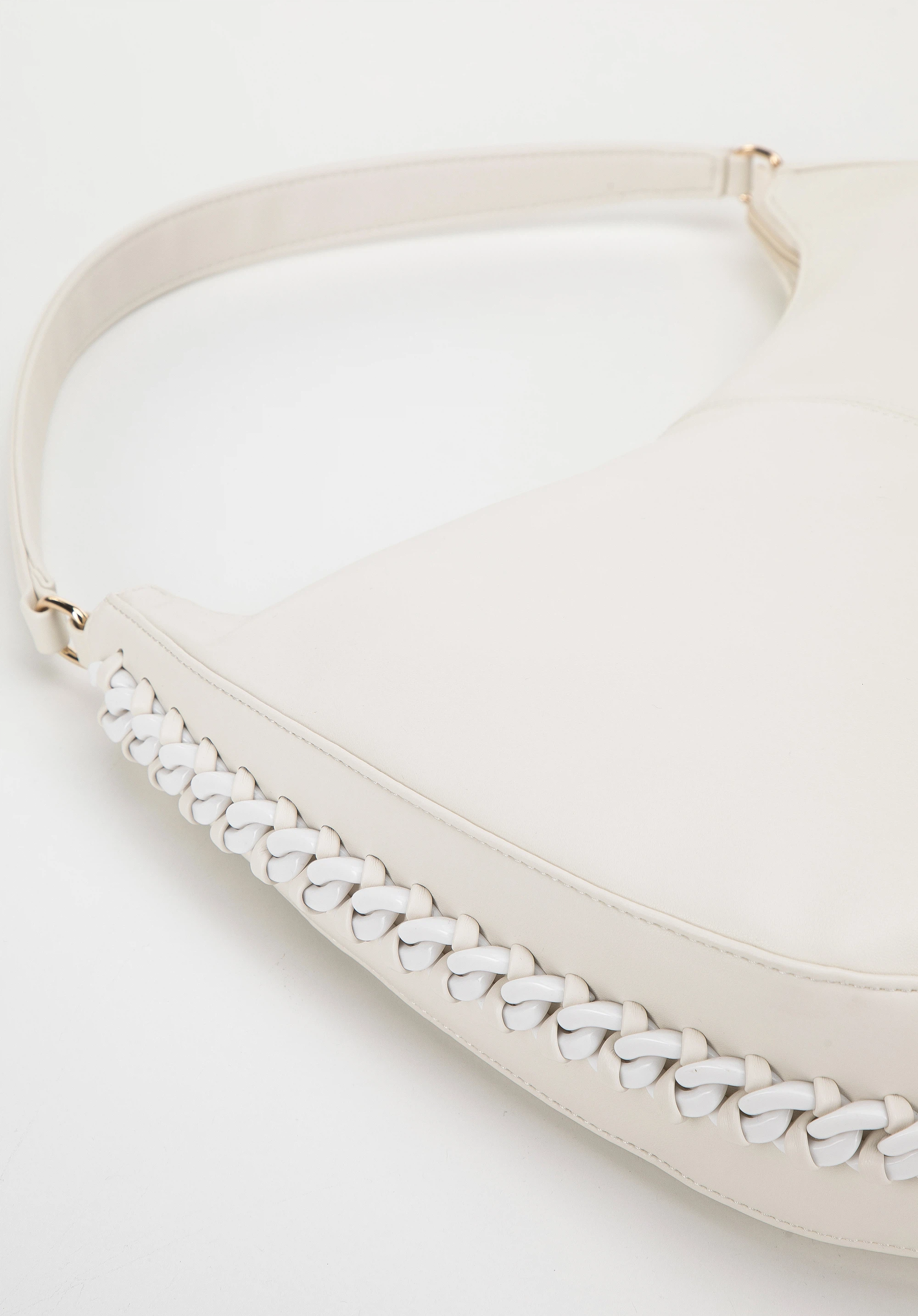 Diese große Damenhandtasche ist perfekt für alle Liebhaber des klassischen Stils in moderner Form. Die zart abgerundete Form dieser Handtasche ist mit einer dicken, glitzernden Kette verziert. Im Inneren passt fast alles hinein, was Sie für den ganzen anstrengenden Tag brauchen: A4-Dokumente, Kalender, Geldbörse, Kosmetiktasche, Thermobecher, Ersatzschal und ein paar Kleinigkeiten. Eine Hobo-Tasche aus Kunstleder mit eingewebtem Kettenbesatz ist eine tolle Wahl für den täglichen Gebrauch, sowohl bei der Arbeit als auch nach Feierabend.