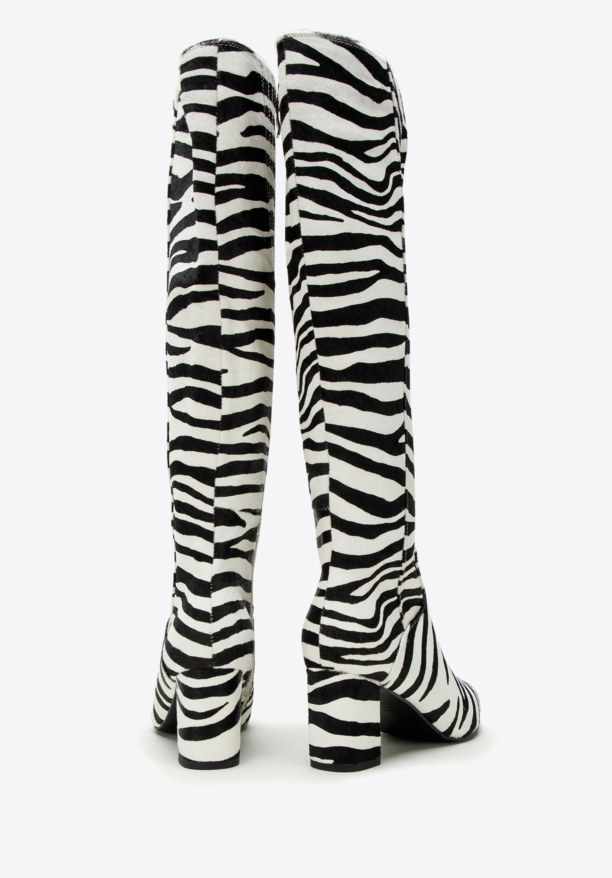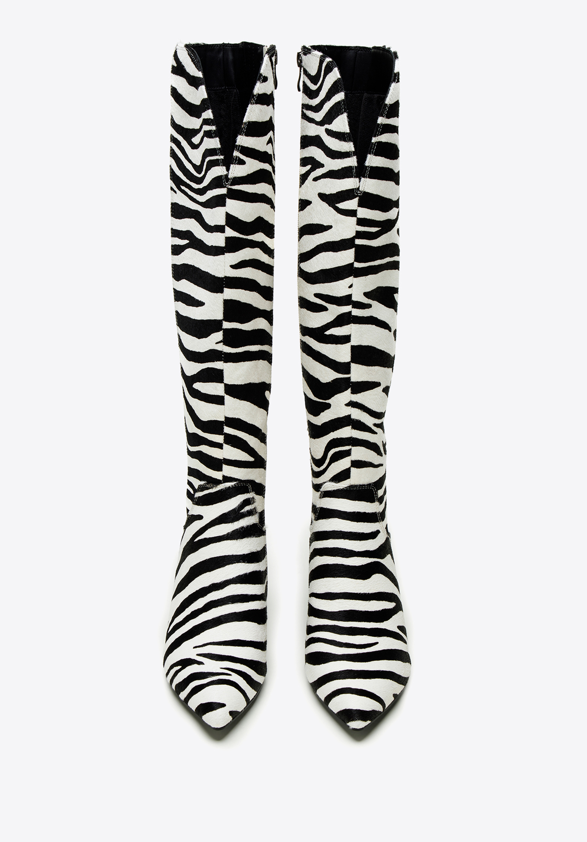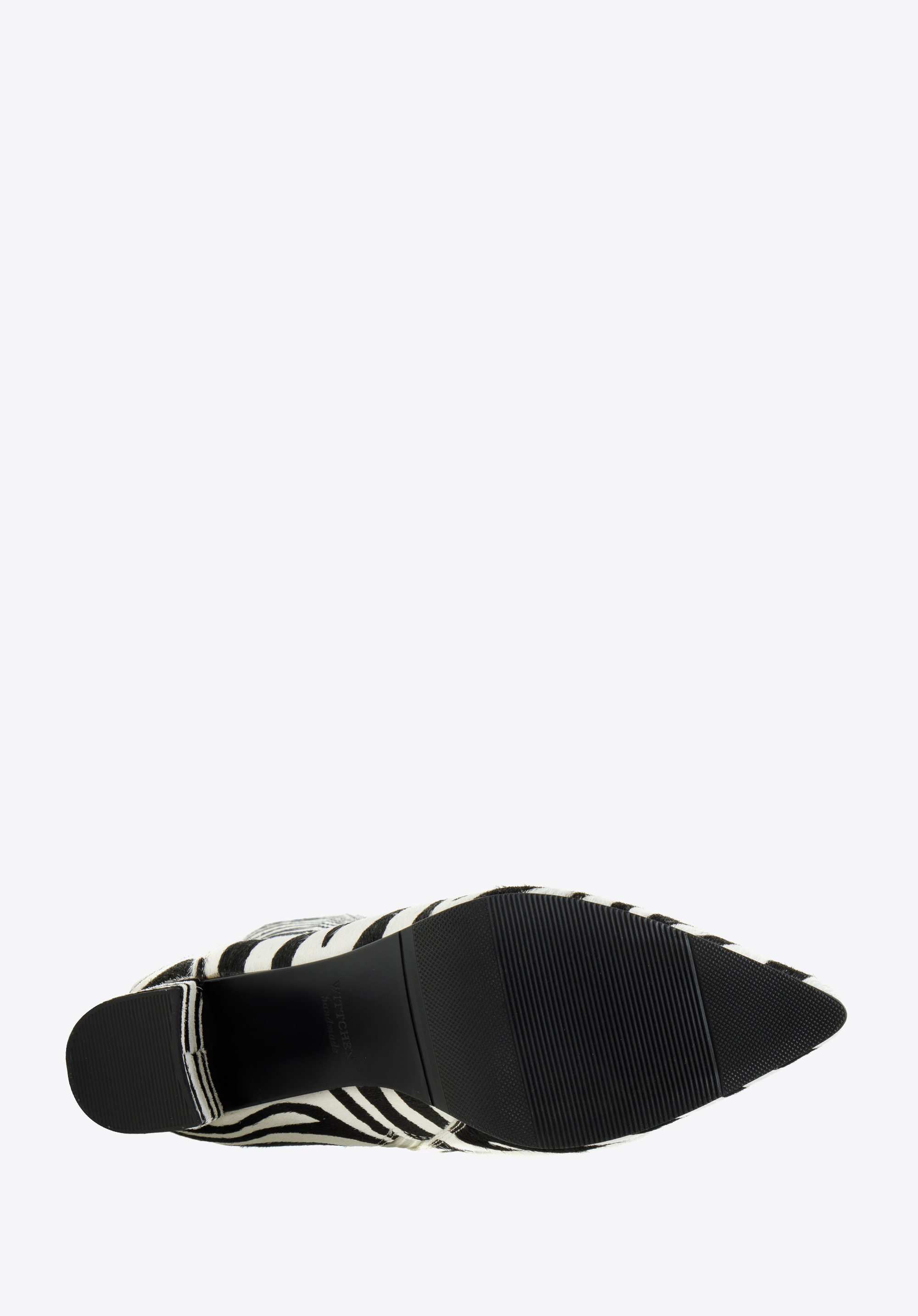 In diesen Stiefeln werden Sie nicht unbemerkt bleiben. Sie sind aus hochwertigem Leder mit Borsten in einem modischen Tiermuster gefertigt . An der Spitze befindet sich ein V-Ausschnitt, der die Wade betont. Die Stiefel haben eine formschöne spitze Spitze und einen bequemen Stiletto-Absatz, der Ihnen ein paar Zentimeter Höhe verleiht. An der Innenseite befindet sich ein Reißverschluss, der das An- und Ausziehen erleichtert. Dieses Modell bringt Abwechslung in ein Set mit einem klassischen Trench und peppt ein feminines Minikleid auf. Damenstiefel aus Leder mit Tiermuster sind eine gute Wahl für Liebhaberinnen von Accessoires mit Charakter.
